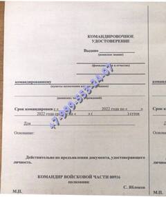 Заказать командировочное удостоверение военнослужащего в Юрюзани можно и по иным причинам, например, необходимо срочно ехать на учения или в зону боевых действий. В таком случае следует обращаться к руководству с заявлением. Если человек потерял, или испортил документы, он может обратиться в нашу компанию. Купить командировочное удостоверение военнослужащего с доставкой мы предлагаем недорого.